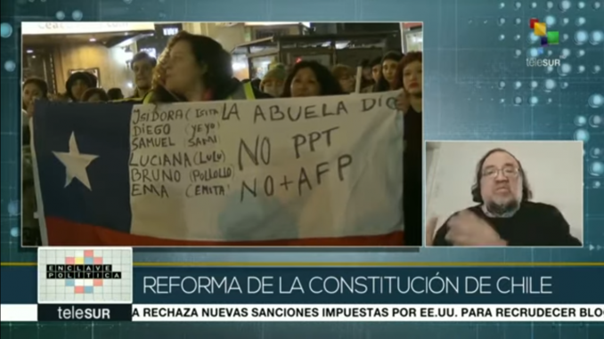 «En Chile nunca ha habido una Constitución que haya sido elaborada con participación ciudadana.» 5 junio, 2019 Sin categoría 0 Esteban Silva en En ClavePolitika de Telesur : «En Chile nunca ha habido una Constitución que haya sido elaborada con participación ciudadana.» Comparta este artículo